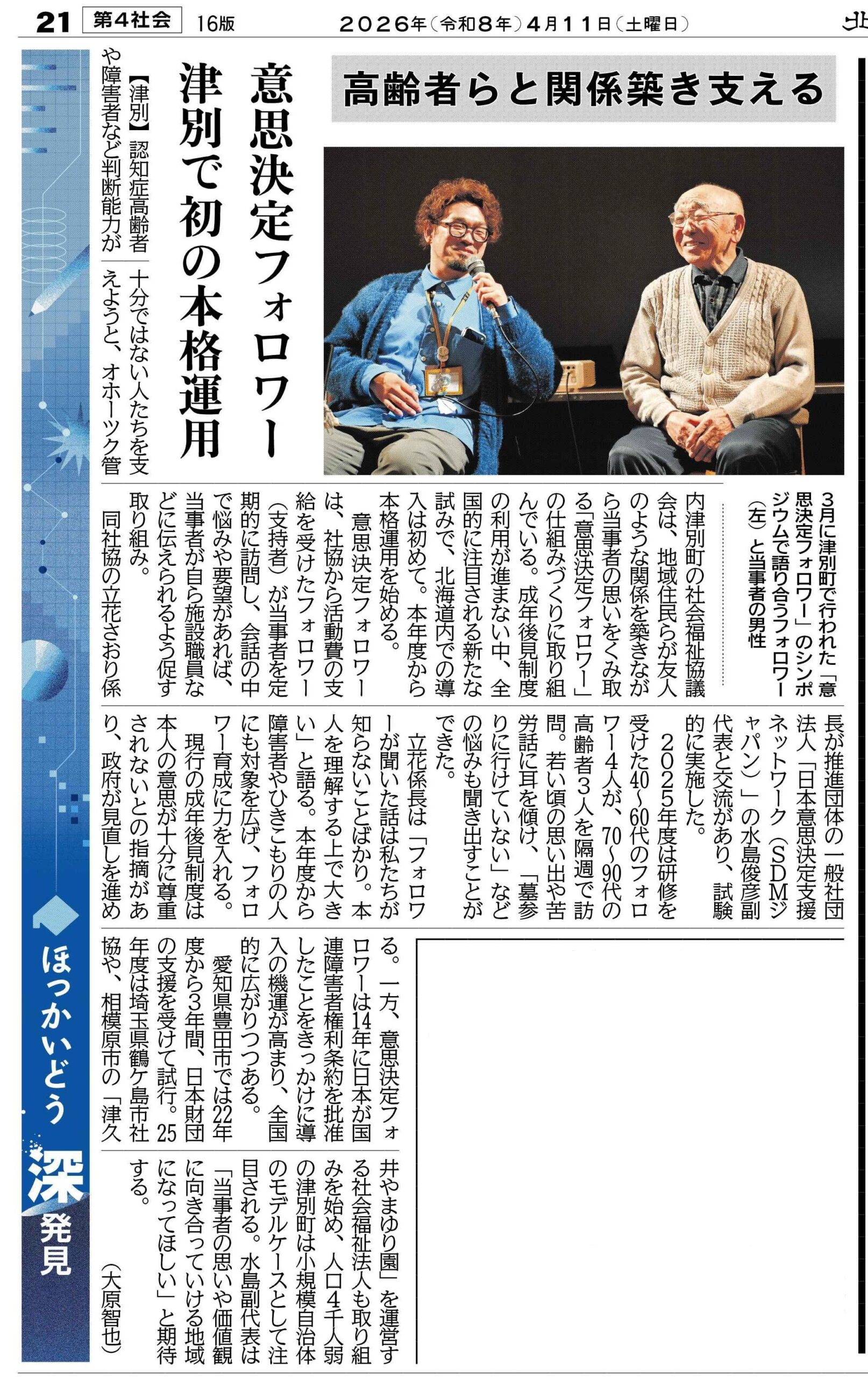 「意思決定フォロワー」の活動が北海道新聞に掲載
